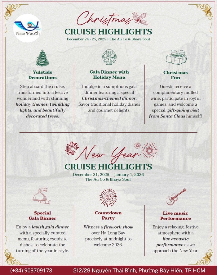Tour du thuyền trên Vịnh Hạ Long đón Giáng Sinh 2025 và Countdown Party năm mới